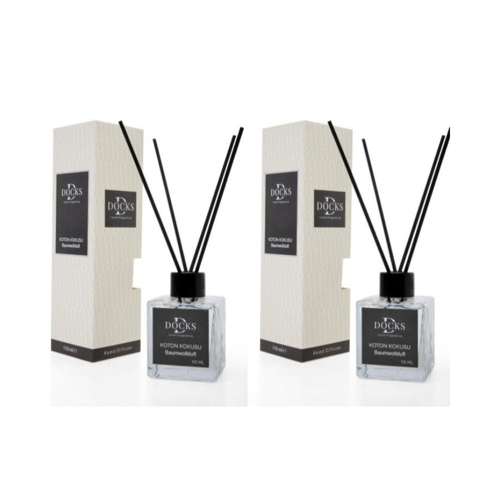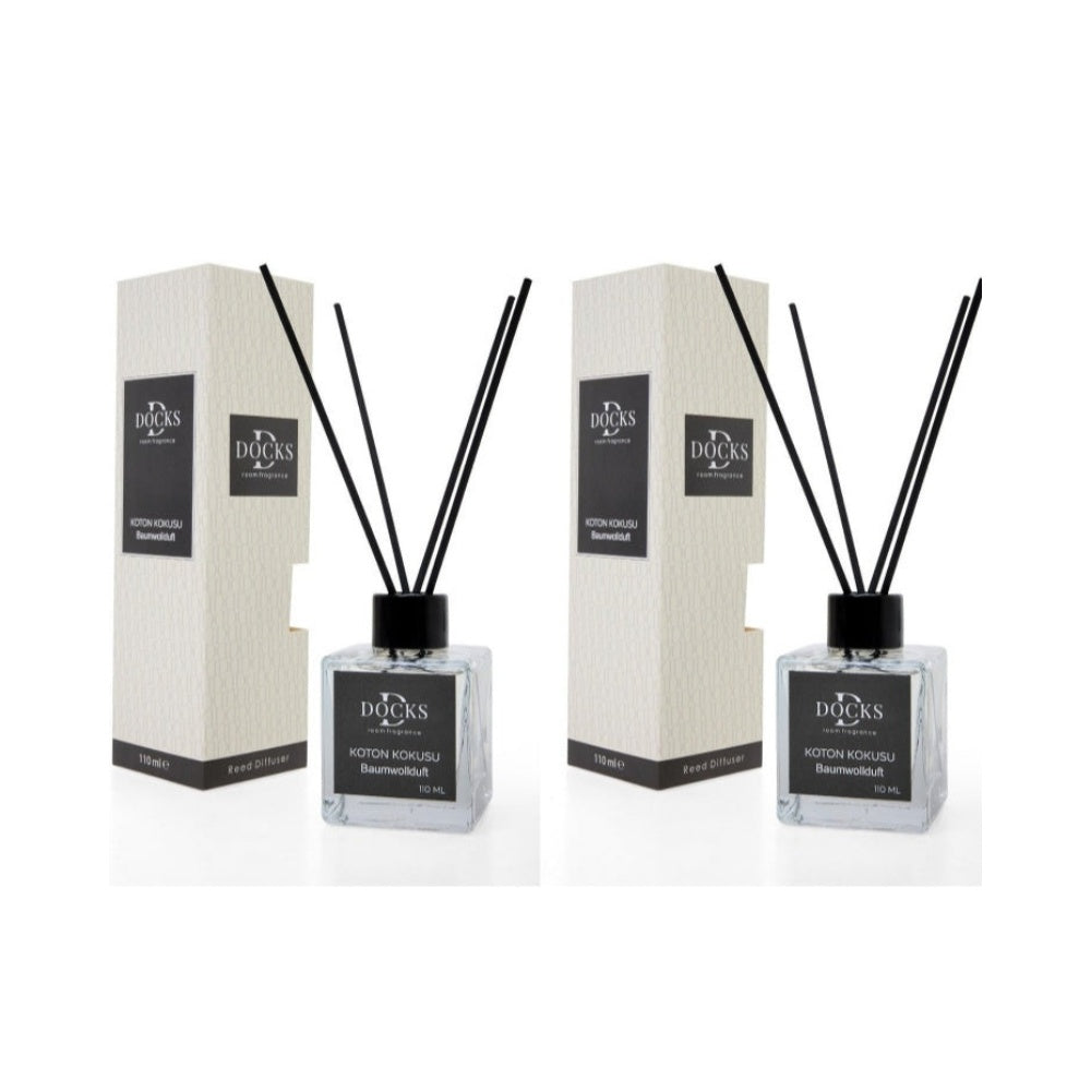 2er Set DOCKS Raumduft Set 110ml Diffuser mit Duftstäbchen – Lufterfrischer Duft Baumwolle