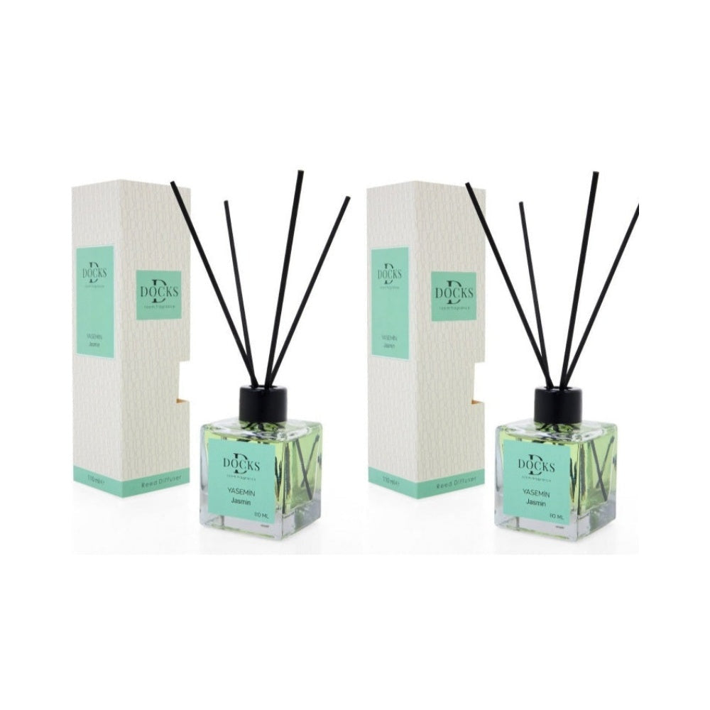 2er Set DOCKS Raumduft Set 110ml Diffuser mit Duftstäbchen – Lufterfrischer Duft Jasmin