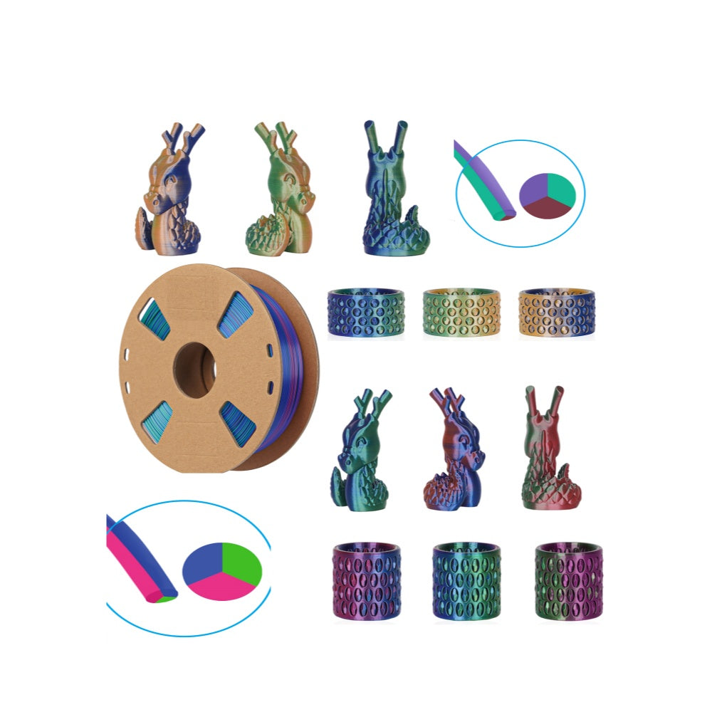 - Diese Magic PLA Filament von uns ist 3 farbig und wechselt nicht die Farbe sondern ist durchgehend 3 farbig.